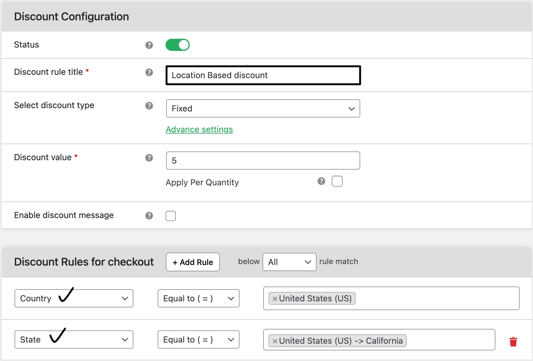 Your store automatically applies discounts for customers based on their shipping state or country. This ensures localized offers, happier buyers, and better control over regional sales growth.