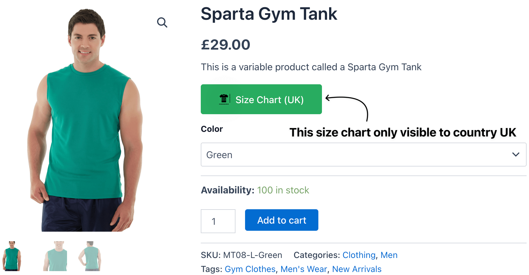 With the Size Chart plugin, you can display a specific size chart only for customers from selected countries.