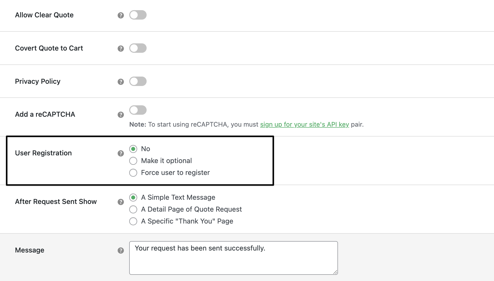 Whether you make registration optional to provide flexibility or mandatory to ensure all customers have accounts, this feature integrates smoothly into your quote request workflow.