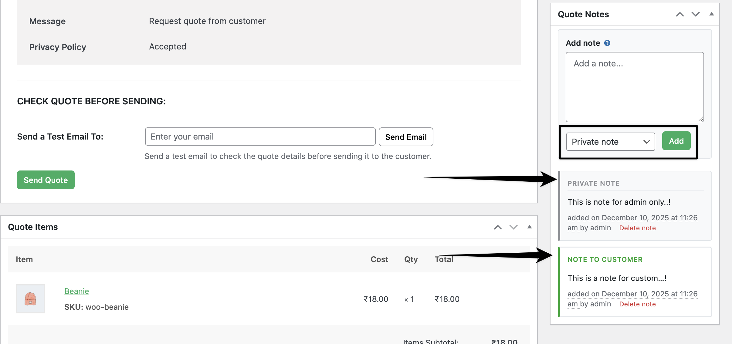 How to add notes to quote requests in WooCommerce?