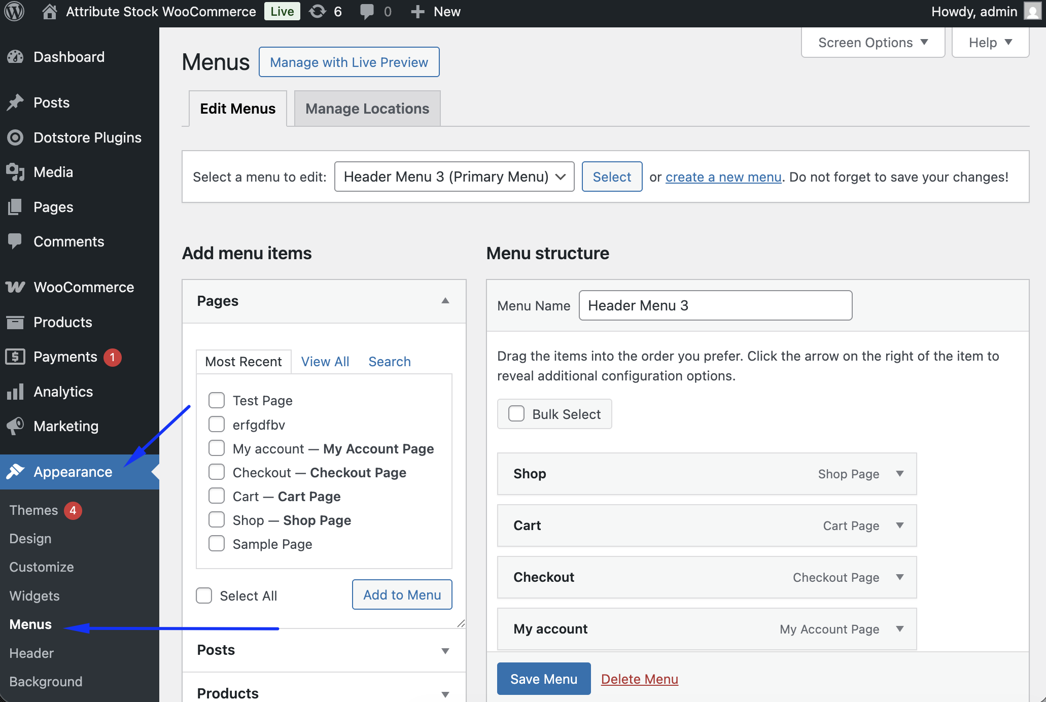 - Navigate to Appearance → Menus.