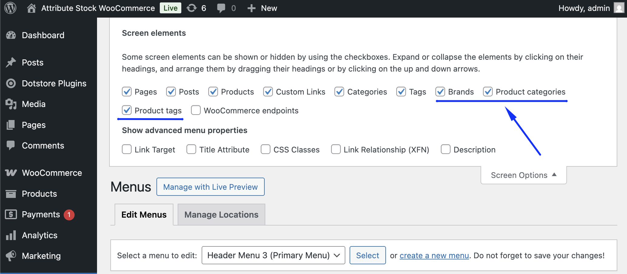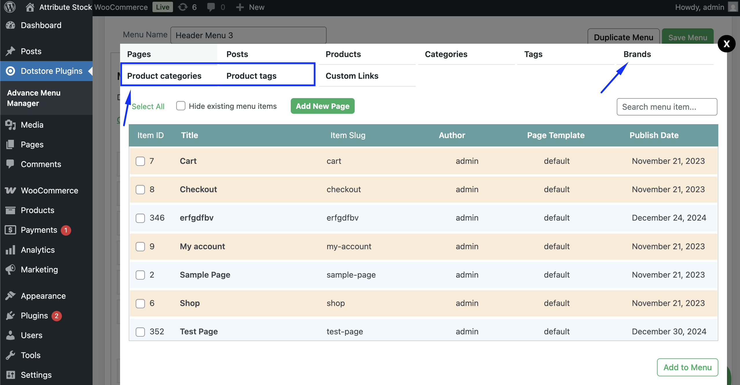 How to Show WooCommerce Product Categories and Other Taxonomies in the “Add to Menu” Popup