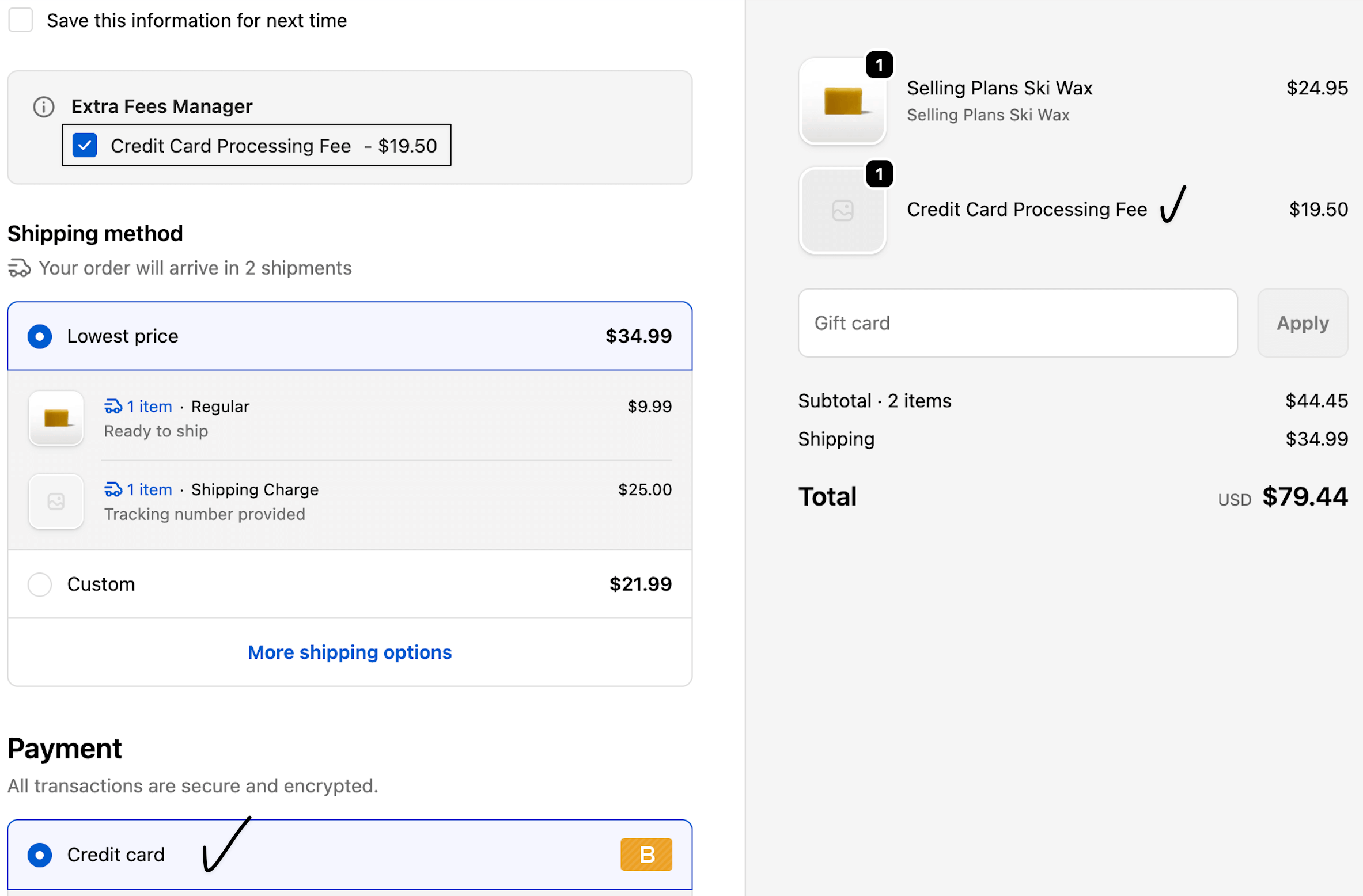 How to create a payment method–based fee in Shopify