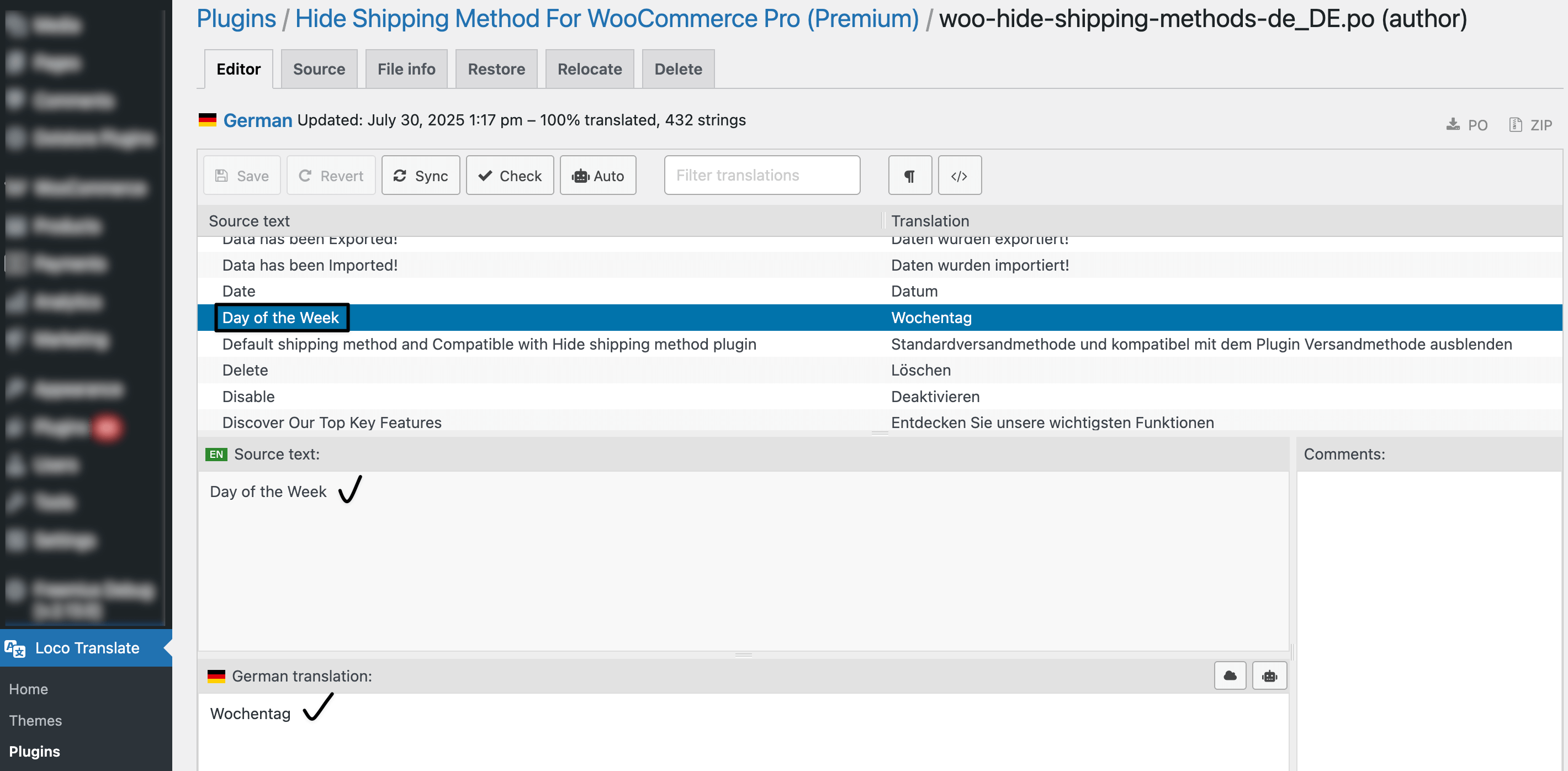 This guide will help you translate strings from the Hide Shipping For WooCommerce Plugin using the Loco Translate plugin.