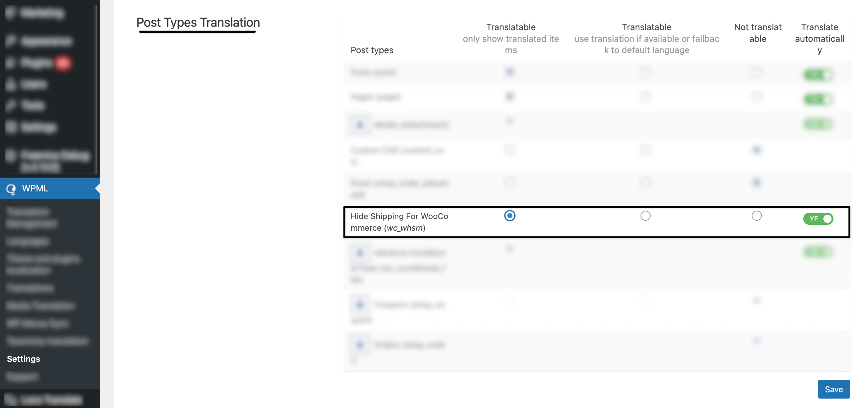 WPML is a popular plugin for translating the text within your website into various languages for your international customers. One of the benefits of the Hide Shipping Plugin is that you can hide any specific shipping method based on various conditions. But that means customers speak different languages, so you will want to ensure that your titles translate accordingly.