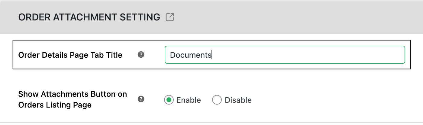 - Open the Order Attachment Settings section