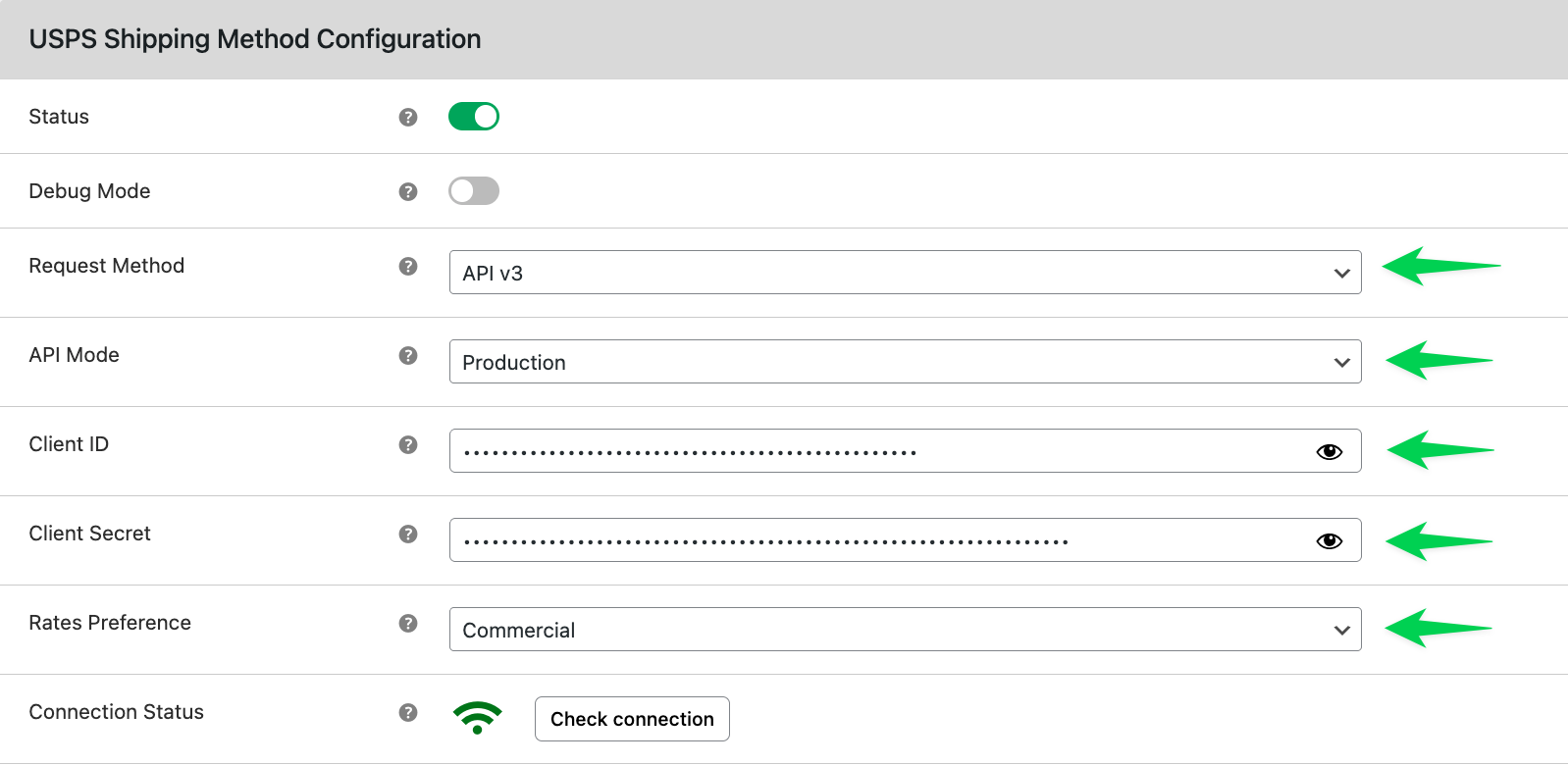 - Select Request Method to API v3 (which is the latest USPS API connection).